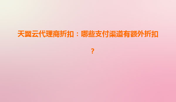 天翼云代理商折扣解析:哪些支付渠道有额外优惠?