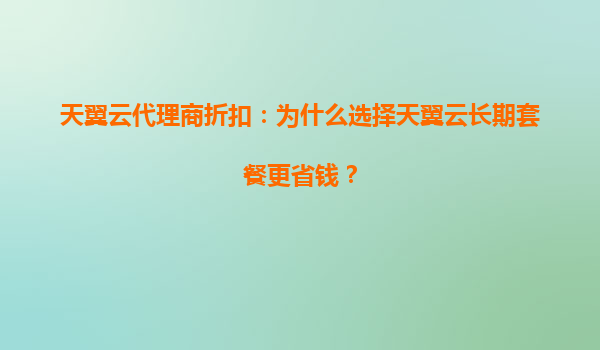 天翼云代理商折扣:为什么选择天翼云长期套餐更省钱?