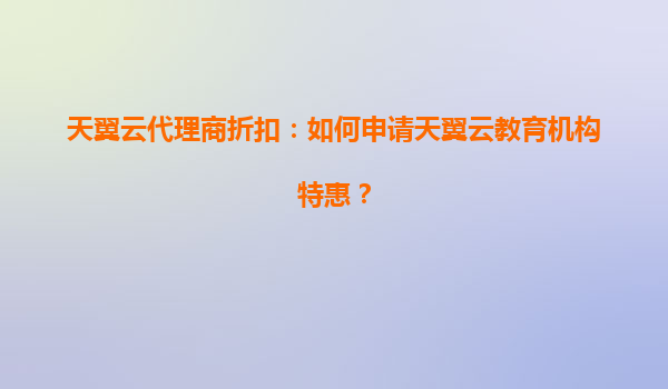 天翼云代理商折扣:如何申请天翼云教育机构特惠?