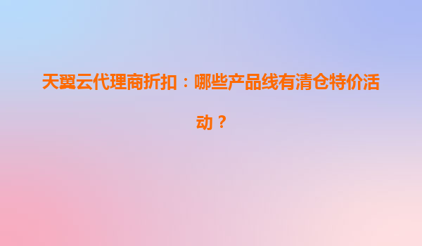 天翼云代理商折扣:哪些产品线有清仓特价活动?