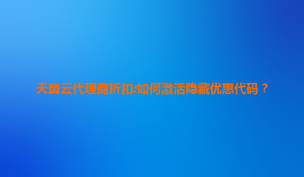 天翼云代理商折扣:如何激活隐藏优惠代码?