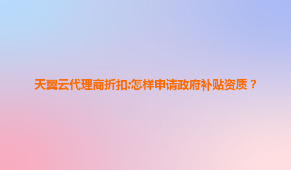 政府针对云计算产业设有专项补贴政策,代理商可通过以下步骤完成申请: