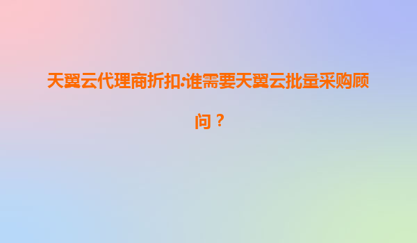 天翼云代理商折扣:谁需要天翼云批量采购顾问?