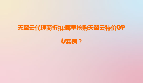 天翼云代理商折扣:抢购特价GPU实例的黄金机会