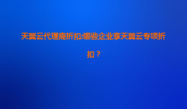 天翼云代理商折扣政策解析:哪些企业可享专项优惠?