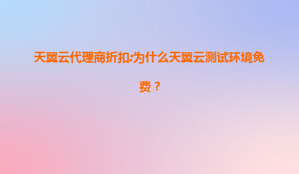 天翼云代理商折扣:为什么天翼云测试环境免费?
