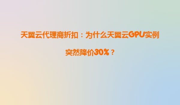 天翼云GPU实例降价30%的背后:代理商优势与市场策略解析