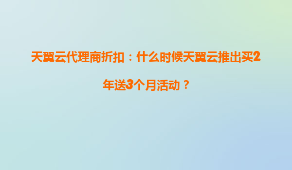 天翼云代理商折扣解读:把握"买2年送3个月"活动时机,打造最优上云方案