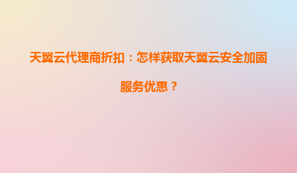 天翼云安全加固服务:如何通过代理商折扣获取最优价格