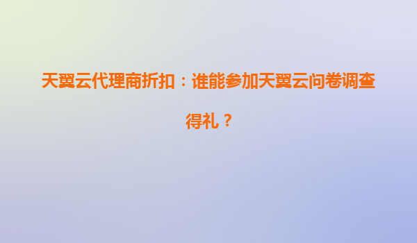 天翼云作为国内领先的云计算服务提供商,始终致力于为合作伙伴创造更多价值。近期推出的代理商问卷调查活动,不仅是对合作伙伴需求的一次深入了解,更是为积极参与者准备了丰厚的礼品奖励。那么,究竟哪些人可以参加这次问卷调查并获得礼品呢?