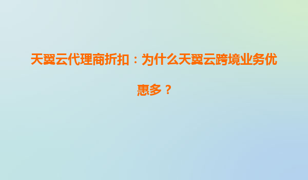 天翼云代理商折扣:为什么天翼云跨境业务优惠多?