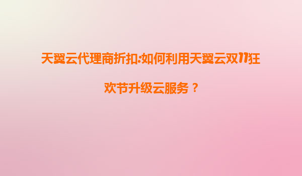 天翼云代理商折扣:如何利用天翼云双11狂欢节升级云服务?