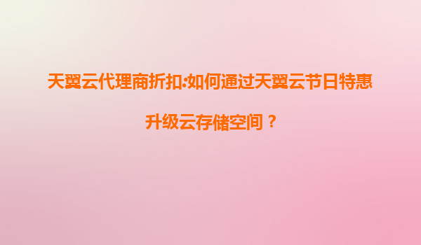 天翼云代理商节日特惠:解锁云存储升级新姿势