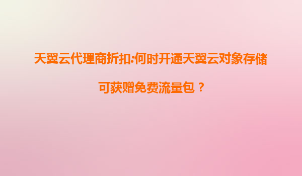 近期,天翼云针对代理商推出了一项极具吸引力的优惠政策:在指定时间内开通天翼云对象存储服务,即可获赠免费流量包。这一活动不仅降低了企业用户的使用成本,更体现了天翼云对广大用户的诚意与支持。