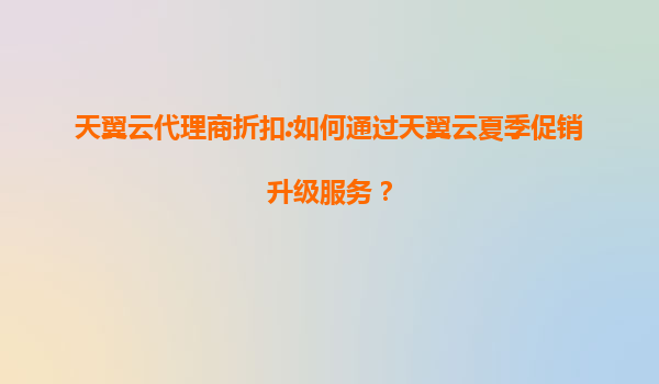 天翼云代理商折扣:如何通过天翼云夏季促销升级服务?