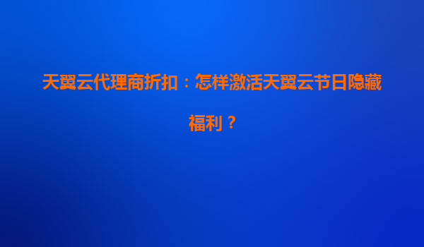 天翼云代理商折扣:怎样激活天翼云节日隐藏福利?