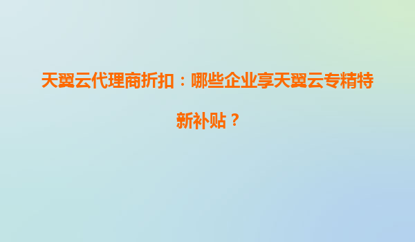 天翼云代理商折扣:哪些企业享天翼云专精特新补贴?