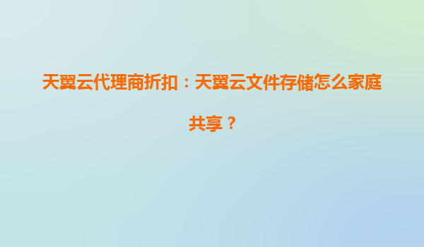 天翼云文件存储家庭共享指南:代理商折扣助力轻松实现