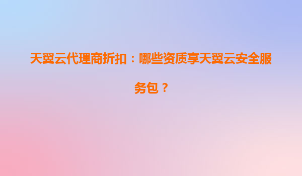 天翼云代理商折扣:哪些资质可享天翼云安全服务包?