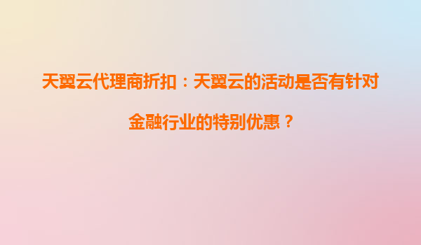 天翼云代理商折扣解析:金融行业特别优惠探讨