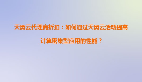 天翼云代理商折扣:如何通过天翼云活动提高计算密集型应用的性能?