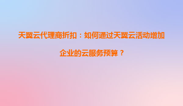天翼云代理商折扣:如何通过天翼云活动增加企业的云服务预算?