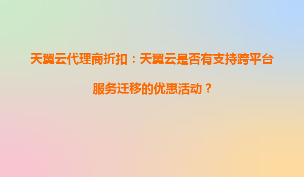 天翼云代理商折扣:跨平台服务迁移的优惠活动解析与优势详解