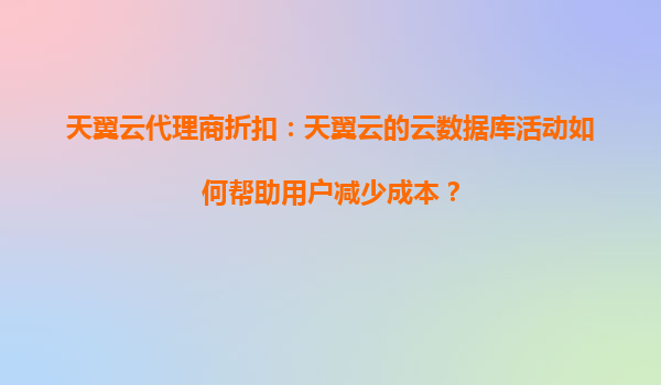 天翼云代理商折扣:天翼云的云数据库活动如何帮助用户减少成本?