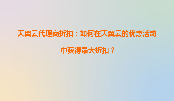 天翼云代理商折扣攻略:如何在优惠活动中最大化节省成本