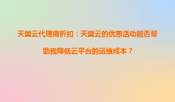 天翼云代理商折扣:天翼云的优惠活动能否帮助我降低云平台的运维成本?