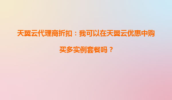 天翼云代理商折扣政策解读:多实例套餐购买指南