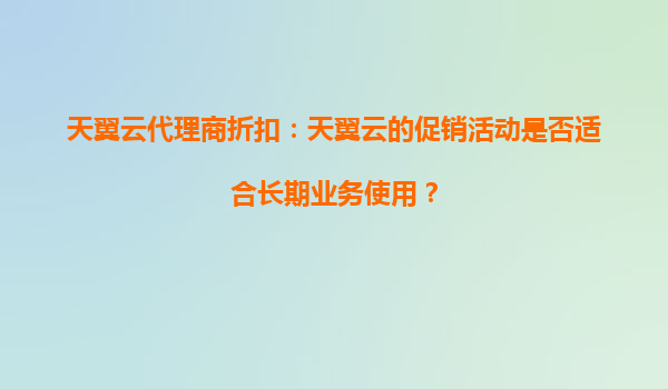 天翼云代理商折扣:天翼云的促销活动是否适合长期业务使用?