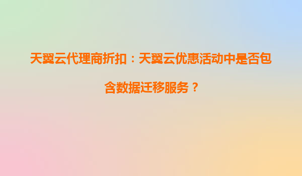 天翼云代理商折扣:天翼云优惠活动中是否包含数据迁移服务?