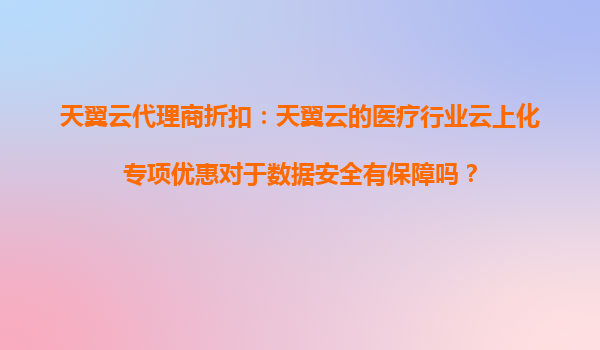 天翼云医疗行业云上化专项优惠:数据安全的坚实后盾