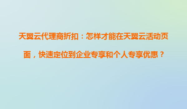 天翼云代理商折扣:快速定位企业专享与个人专享优惠指南