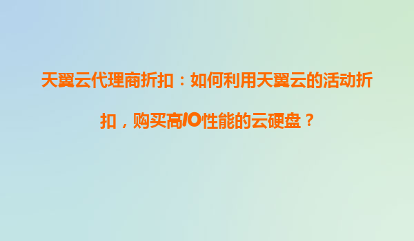 天翼云代理商折扣:如何利用天翼云的活动折扣,购买高IO性能的云硬盘?