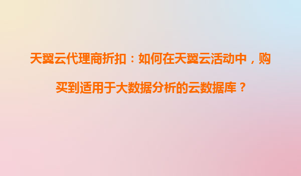 如何在天翼云活动中购得适用于大数据分析的云数据库