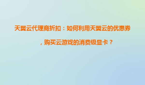 天翼云代理商折扣:如何利用天翼云的优惠券,购买云游戏的消费级显卡?