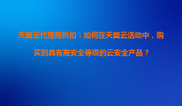 如何通过天翼云代理商折扣选购高安全等级云安全产品