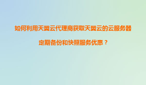 如何利用天翼云代理商获取天翼云的云服务器定期备份和快照服务优惠?