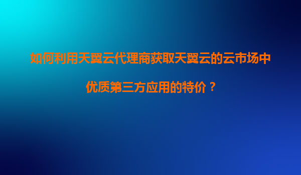 如何利用天翼云代理商获取天翼云的云市场中优质第三方应用的特价?
