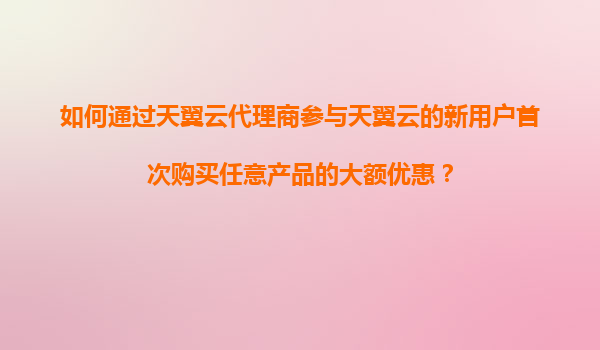 如何通过天翼云代理商参与天翼云的新用户首次购买大额优惠