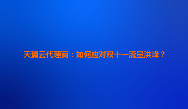 天翼云代理商如何应对双十一流量洪峰?
