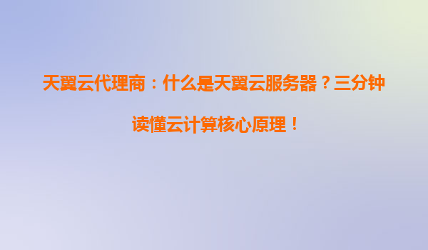 什么是天翼云服务器?三分钟读懂云计算核心原理!