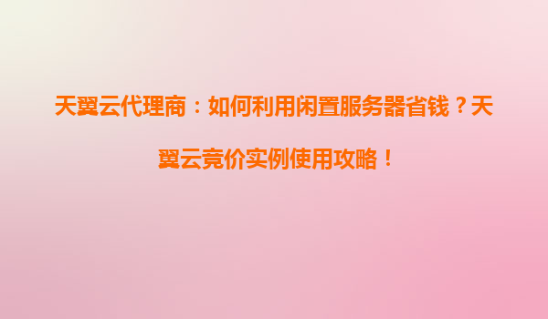 天翼云代理商:如何利用闲置服务器省钱?天翼云竞价实例使用攻略!