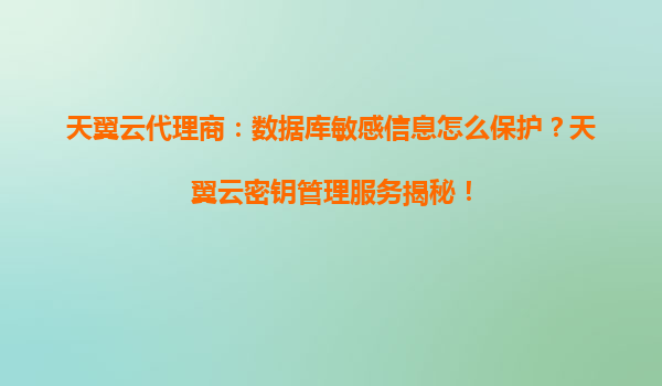 天翼云代理商:如何保护数据库敏感信息?密钥管理服务深度解析