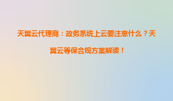 天翼云代理商:政务系统上云注意事项与等保合规方案解读