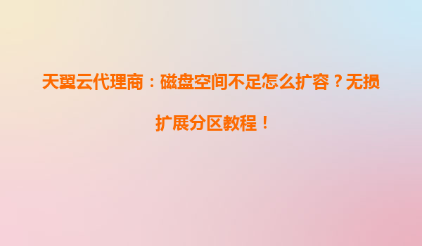 天翼云代理商:磁盘空间不足怎么扩容?无损扩展分区教程!