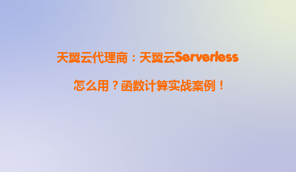 天翼云Serverless函数计算实战指南:释放云端无限潜能