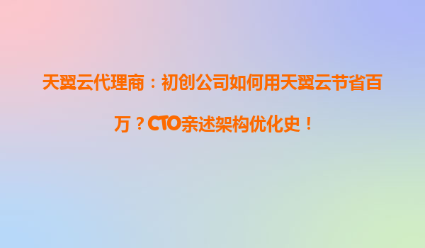 初创公司如何用天翼云节省百万?CTO亲述架构优化史!